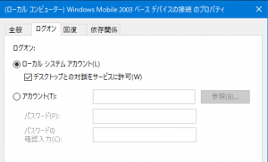 - 「デスクトップとの対話をサービスに許可」を「チェックあり」